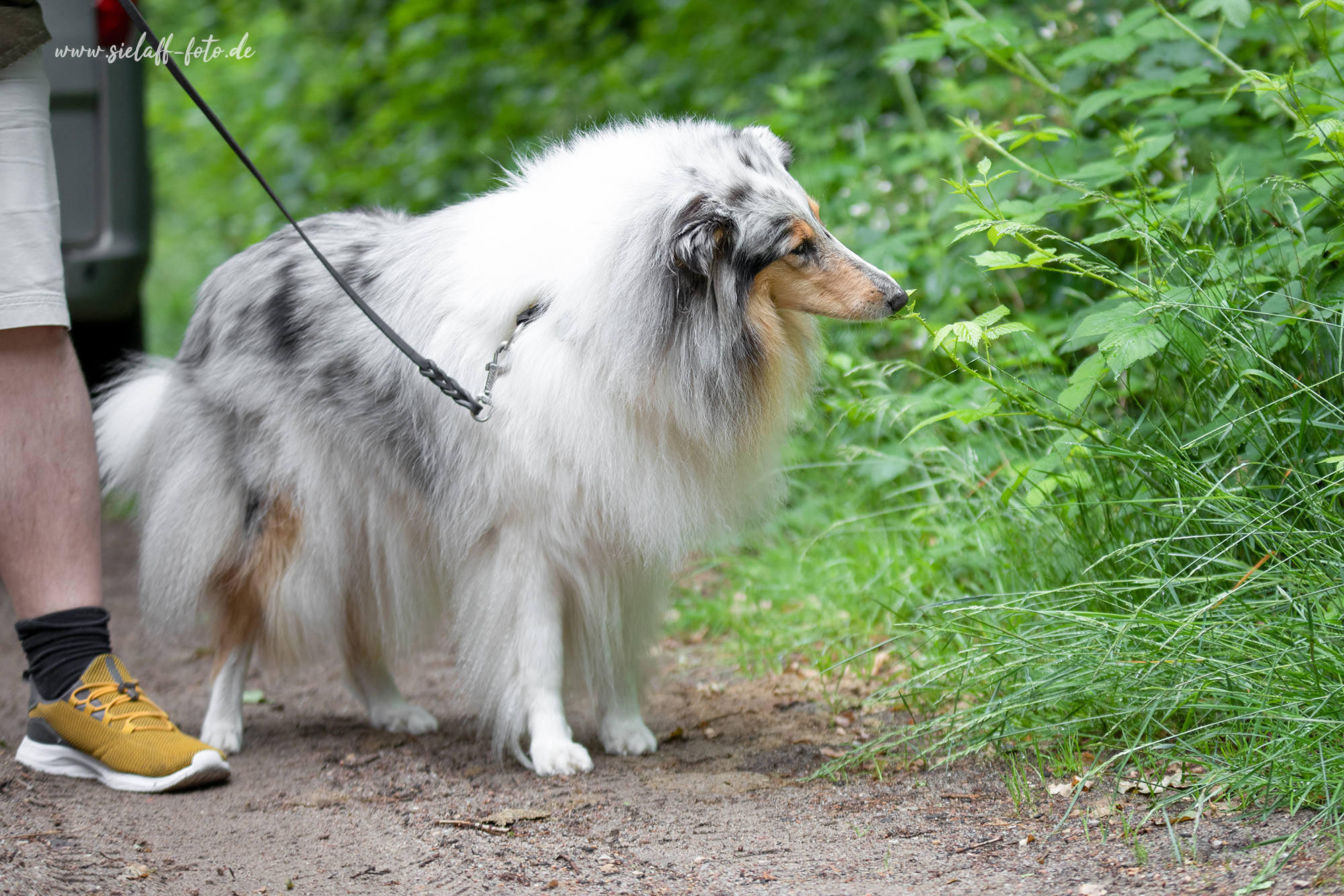 Shayleen ist eine sehr „feinfühlige“, super schön gezeichnete Blue-Merle Hündin. Ein Blue-Merle, was nicht sauberer sein kann. Shayleen verfügt über ein tolles Gebäude und Aufrichtung. Sie hat perfekt angesetzte Naturkippohren, ein vollzahniges Scherengebiss und eine sehr gut gewinkelte Hinterhand. Ihr Temperament hat sie von ihrer Mutter (äußerst sportlich), aber auch unglaublich viele Wesenszüge von ihrer Oma: Einfach umwerfend!